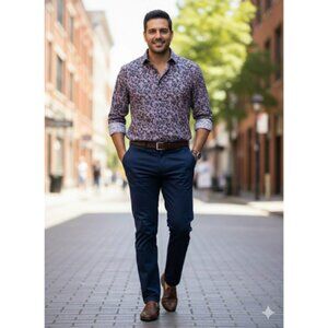 John Lennon by English Laundry Floral Button-Up Shirt XXL Stretch Purple Floral