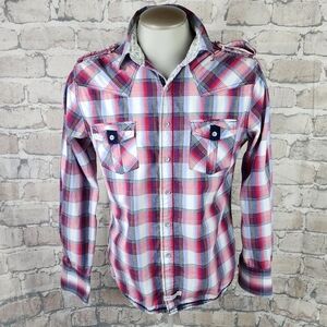 John Lennon for English Laundry Plaid Button Front Shirt Red Blue Size Large