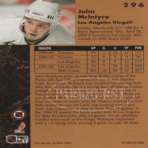 John McIntyre (LA Kings) 1992 Parkhurst Pro Set NHL Hockey Card - Number 296