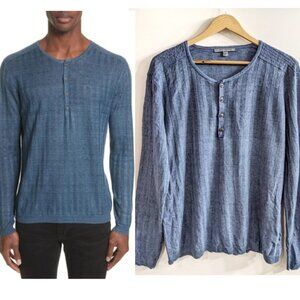 Breezy linen construction means easy appeal in a casual henley with a rib-knit texture. Style Name: John Varvatos Collection Ribbed Linen Henley.