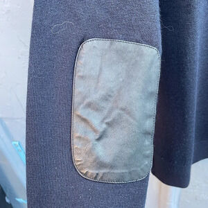 John Varvatos Luxe wool hoodie sweater with leather elbow patches.