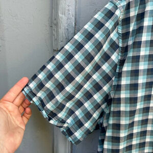 John Varvatos Plaid Check Short Sleeve Button-down Shirt. 100% cotton. Easy every day casual shirt.
