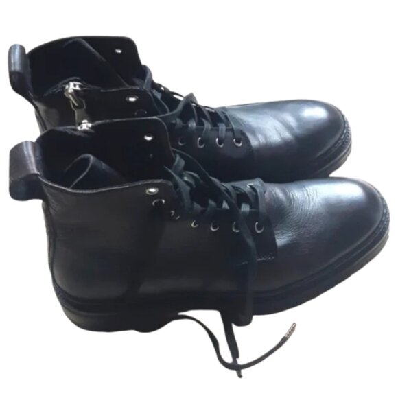 John Varvatos SZ 9.5 Union Combat Boots | Zip & Lace, Black Leather