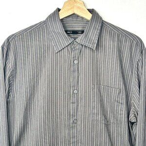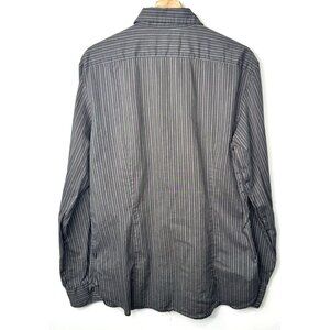 John Varvatos Shirt Men Medium Grey Stripe Button Up Long Sleeve Dress Casual
