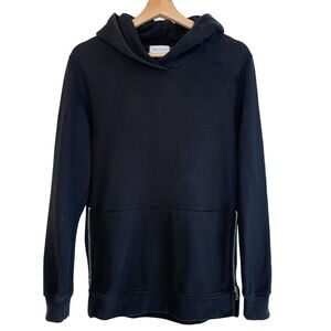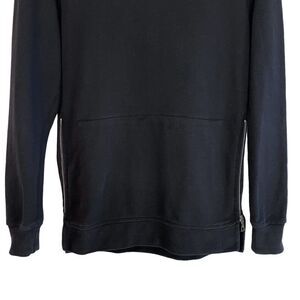 Slim fit hoodie with vertical Riri side zippers that conceal a hidden kangaroo pocket. Rib knit cuffs. This hoodie features custom knit French Terry terry with flatlock stitch details. Made in Los Angeles.