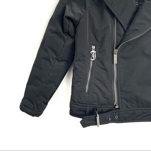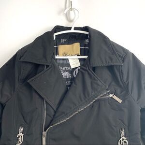 Black John Galliano zip moto jacket , it has a thickness to it like a puffer so good for the colder months .