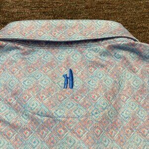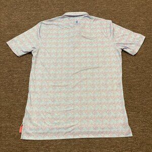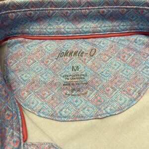 Johnnie-O Men's Medium Polo Shirt Blue Red Geometric Performance Stretch UPF 50