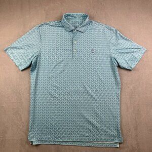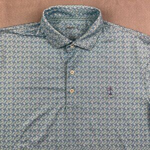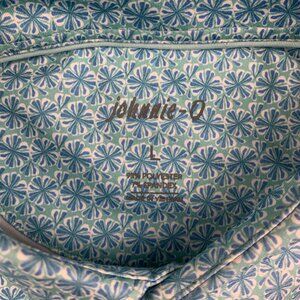 Johnnie-O Mens Shirt Large Ibiza Blue Wheaton Polo Prep-Formance Floral Flowers