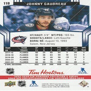 Johnny Gaudreau (Columbus) 2023/2024 Tim Hortons Collector's Series Base Card
