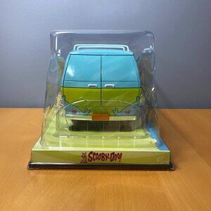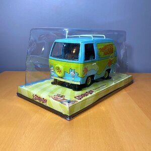 The product is a rare 1/18 scale die-cast model of Scooby-Doo's The Mystery Machine by Johnny Lightning. This unopened box toy, featuring a van design in multi-color, is part of the Johnny Lightning Hot Rods series and appeals to boys and girls who are fans of the Scooby-Doo character family. Manufactured in 2003 in China, this collectible item would make a great addition to any die-cast vehicle collection. This weighs about 5 pounds & the van itself measures approximately 8”×6”×5” while to entire box measures 14”x8”x7.5”.