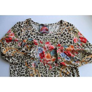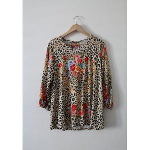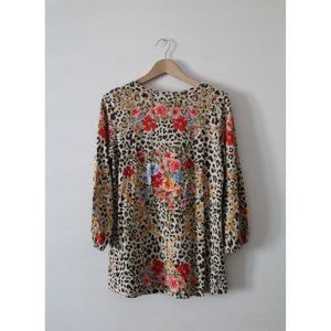 Johnny Was Cheetah Puff Sleeve Top Multi Size Medium