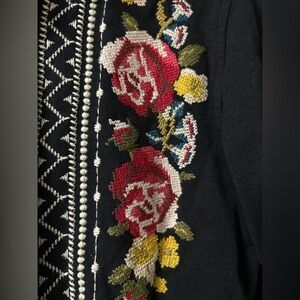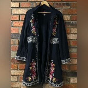 Johnny Was Embroidered Floral French Terry Kimono Coat Size Medium