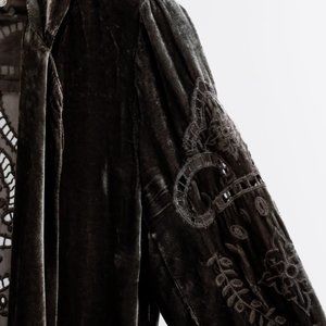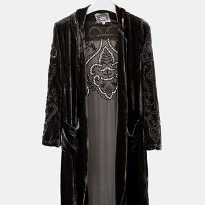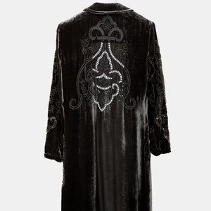 Johnny Was Embroidered Grey Velvet Coat