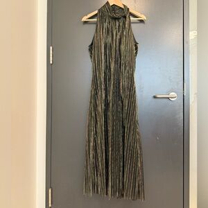 Johnny Was M EUC metallic/iridescent silk lined sleeveless design with a halter neckline, ideal for The gown's luxurious metallic sheen and vertical pleating are both classic and modern- beautiful brand and stunning dress!!