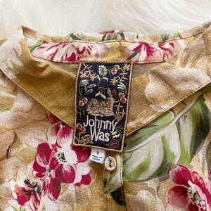 Johnny Was Mustard Yellow Vintage Rose Floral Yrene Silk Long Sleeve Blouse