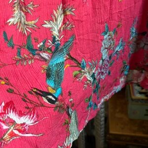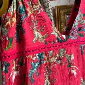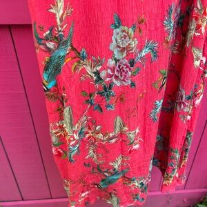 Vibrant pink midi dress with floral patterns. Sleeveless design. Perfect for casual outings.