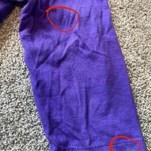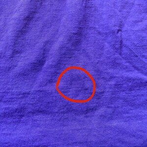 this piece is a well-loved vintage piece please see all the photos I have highlighted via red circles: some threading is loose, stains (some may come out when washed but there are some paint stains as well) price reflects