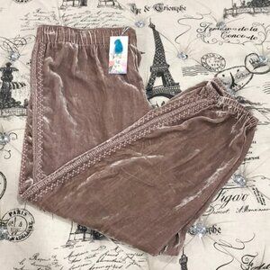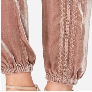 Super soft velvet constructs this pair of comfy jogger pants that feature a stretchy elastic waistband and are detailed with tonal side embroidery.