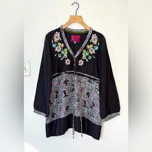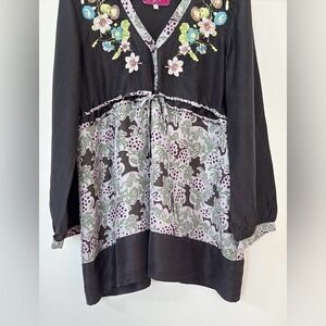 Johnny Was silk embroidered top , sz large