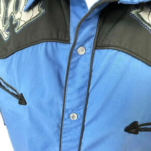 MWG Johnny West Western Men Shirts Blue Size L LS Pearl Snap