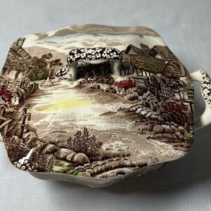 Charming dish with countryside scene. Cream base with brown detailing.