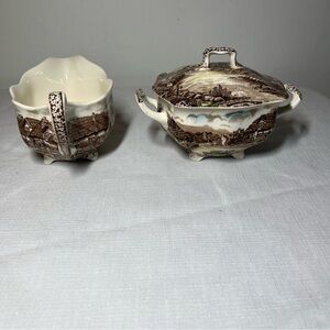 Johnson Brothers Olde English Countryside servers. Gravy/cream veggies dish