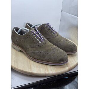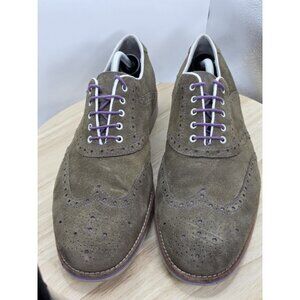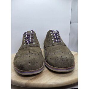Johnston & Murphy Ellington Wingtip Oxford Shoes Mens 12 Suede Khaki/Purple
