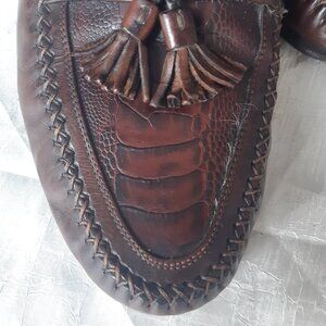 Johnston & Murphy SZ 9.5 Alligator Imprinted Men's Brown Leather Tassel Loafers