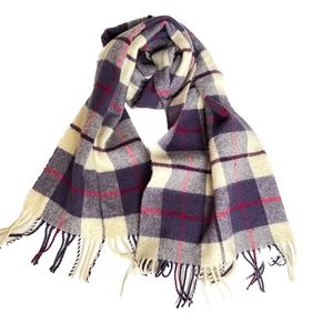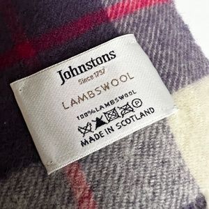 Johnstons 100% Lambswool Scarf Purple Beige Pink Tartan Plaid Scotland