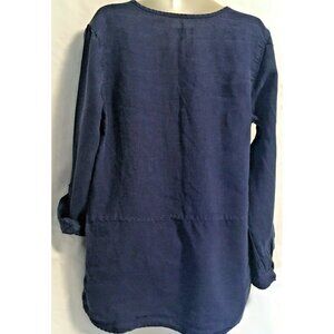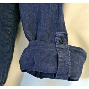 Joie 100% Linen Women Blouse Henley Size L Navy Blue Long Sleeve Rollable Hi-Lo