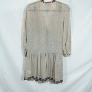 Joie | 100 % Silk Boho Peasant Dress Beige Black Embroidered | Size S