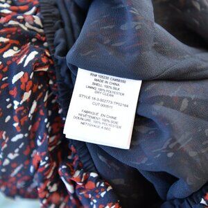 Gorgeous silk patterned blouse from Joie. Featuring balloon statement sleeves with an elasticized cuff. Lined through body with a zip closure at neck.