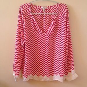Super soft and flowy blouse. Very vibrant and slightly sheer. The neckline opens into a V. There are no buttons or clasps. Pairs well with a gorgeous lace came underneath.
