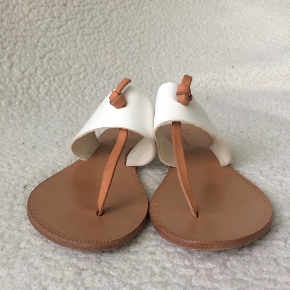 Rounded toe, tan leather thong, white leather upper. Made in Italy. Box included. Original price was $125USD or about $165CAD