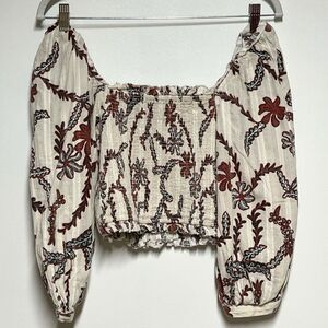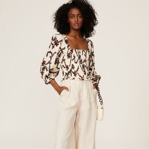 Joie Benison Smocked Square Neck Puff Sleeve Top-Women Sz S