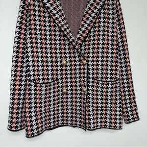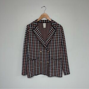 Joie Blazer Women’s Size Small Black Grey Houndstooth Knit Gold Double-Breasted