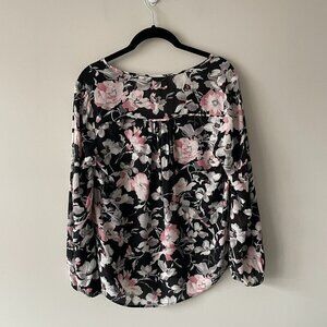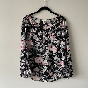 Joie Caviar Odette Floral Print V-Neck Pullover Long Sleeve Blouse Black XS : Used and in good used condition