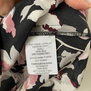 Joie Caviar Odette Silk Floral Print V-Neck Long Sleeve Blouse Black XS