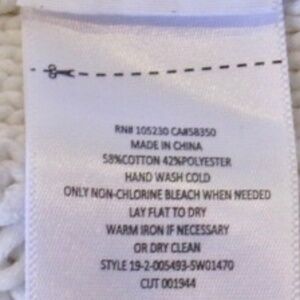Sweater is in very good pre-owned condition. Minor overall wear. No stains or rips. However there is a black thread in the knit on the seam near the fabric tag which is not visible on the exterior. This was there at time of purchase. (see photo #6) .