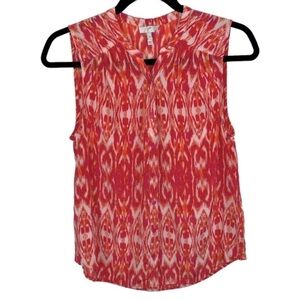 Joie Finnegan Ikat Pure Silk Pink Orange Button Up Sleeveless Tank Top Blouse XS