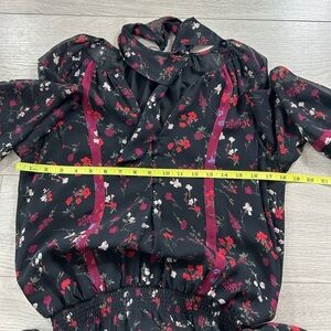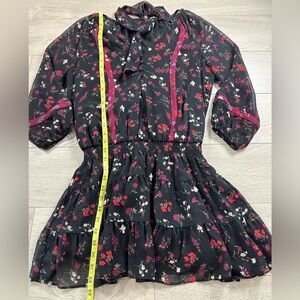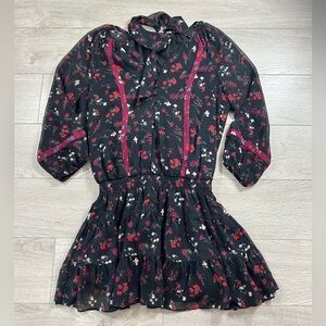 Joie Grover Silk Mini Long Sleeve Dress in Caviar & Dubonnet