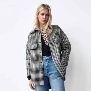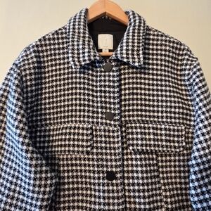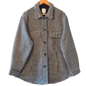 Joie Houndstooth Button Down Women's Boho Casual Shacket Black White Size 1X