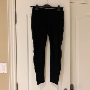 Details: Dressy looking legging with the side stripe in faux leather. 13" waist and 25" inseam.