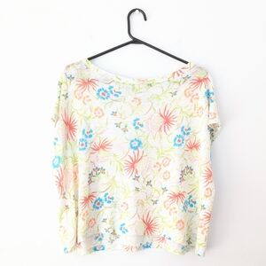 Lovely Joie 100% linen boxy top featuring a lovely floral pattern in green, soft orange and blue. Perfect for summer, with a jeans, a skirt or under a blazer in the office!