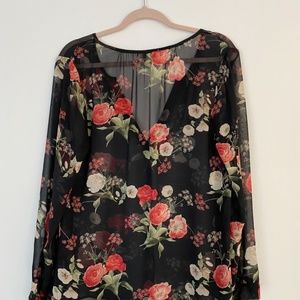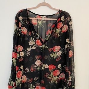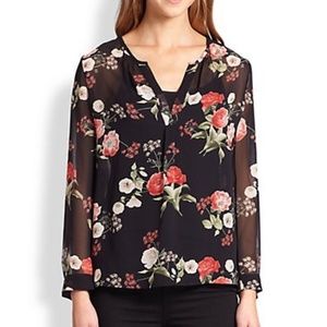 Joie Maurelle Sheer Silk Floral-Print Blouse (L)