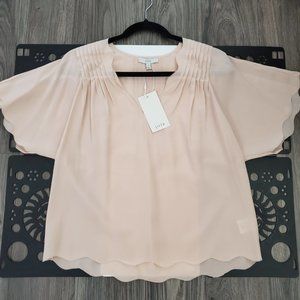 Joie NWOT 100% Silk V-Neck Scalloped Short Sleeve Blouse