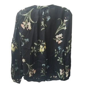 Joie Navy Blue Floral V-neck Button Up Silk Blouse L