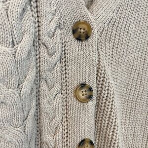 Joie Oatmeal Cable Knit Cotton Blend Button Up Cropped Cardigan