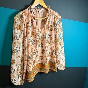 Joie Orange and Pink Long Sleeve Tie Front Blouse