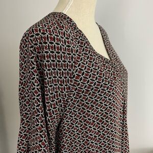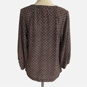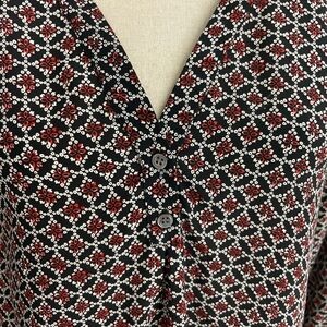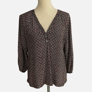 Joie Silk Blouse Top V-Neckline 3/4 Length Sleeves Floral Geometric Print Medium
